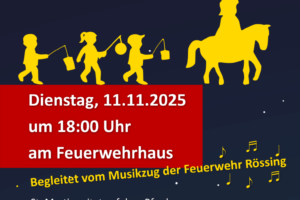 Einladung für alle Kinder mit Ihren Laternen Auch in diesem Jahr veranstalten wieder unseren Martinsumzug durch Rössing. Am Dienstag den 11.11. um 18 Uhr geht es am Feuerwehrgerätehaus los, Alle Kinder, und natürlich deren Eltern, sind herzlich eingeladen mit Ihren leuchtenden Laternen teilzunehmen. Begleitet wird das Ganze vom Musikzug der Feuerwehr. Dafür wird an einigen Stationen halt gemacht, um den Klängen der Musiker zu lauschen. Nach dem Umzug werden wir den Abend bei Bratwurst und Pommes, sowie wahlweise Glühwein, Kakao […]